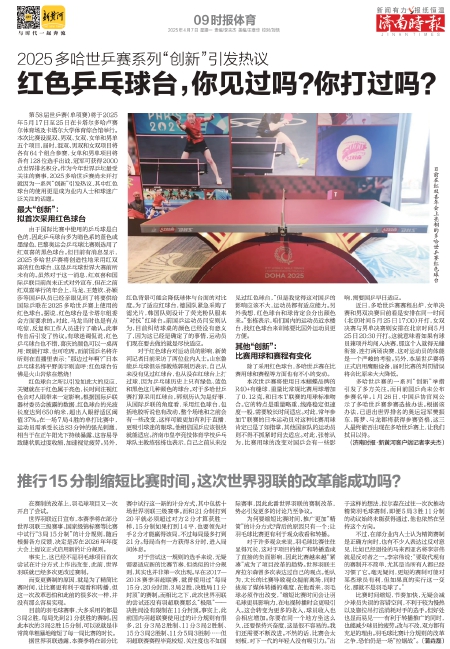 除了采用红色球台,多哈世乒赛在比赛用球和赛程等方面也有不小的变动。