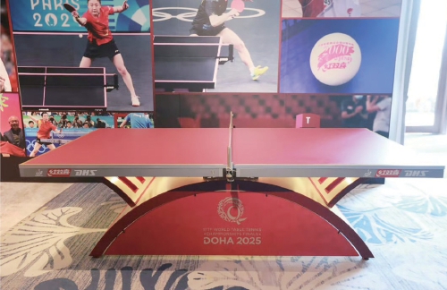 日前在红双喜年会上亮相的多哈世乒赛红色球台