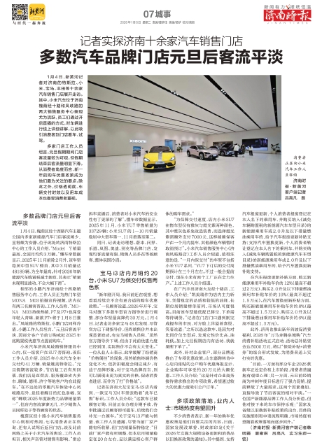 多数汽车品牌门店元旦后客流平淡